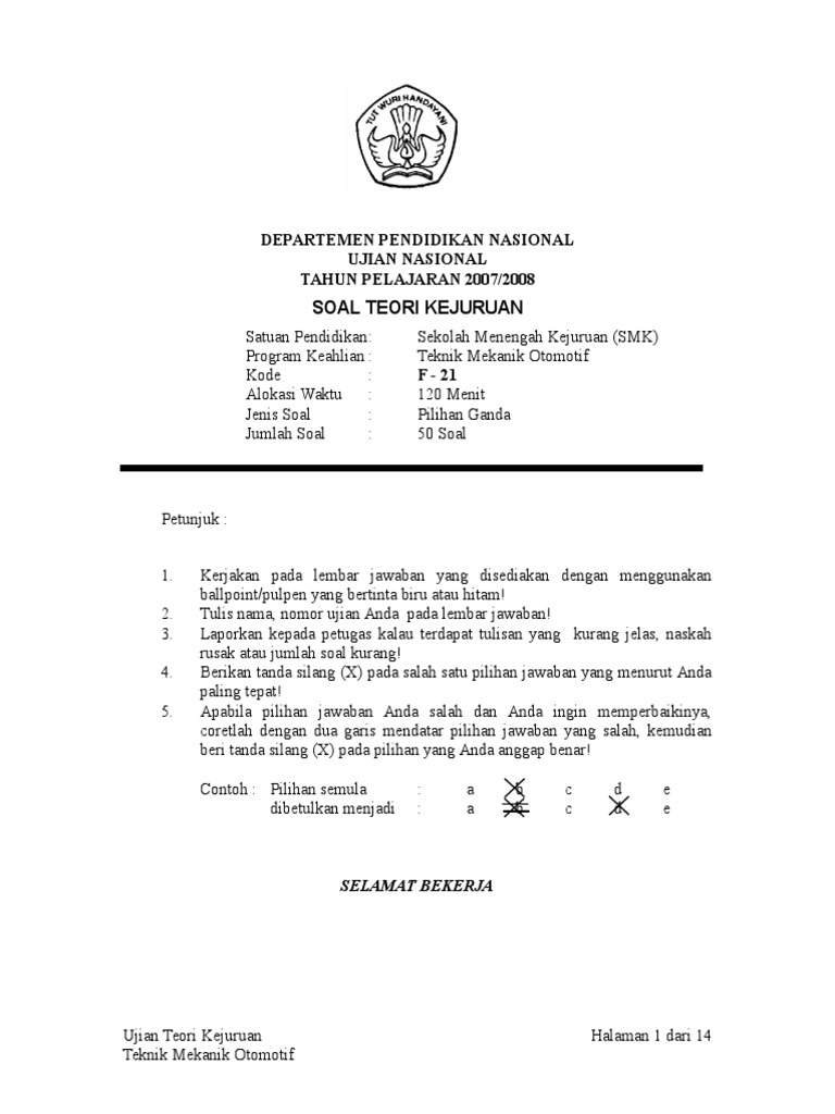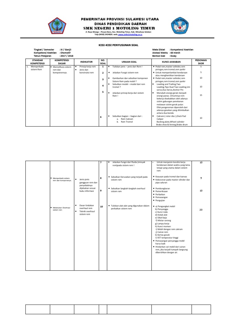 Soal UAS Kejuruan Teknik Kendaraan Ringan | Kumpulan jawaban dan …