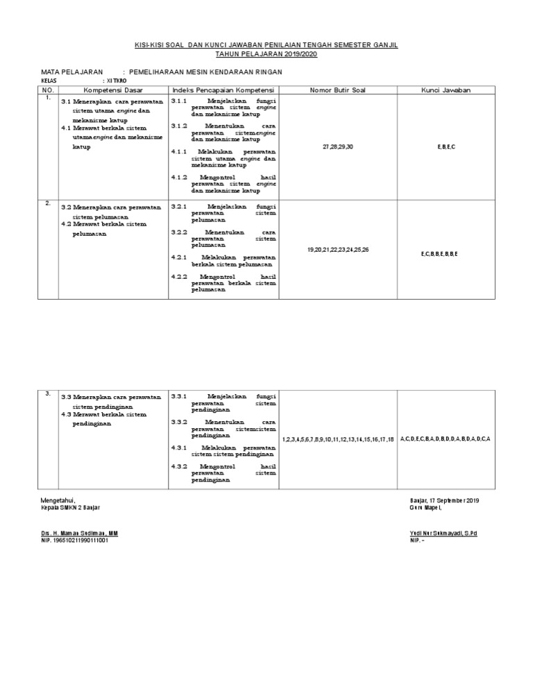Soal Dan Jawaban Pemeliharaan Mesin Kendaraan Ringan Kelas 12 …