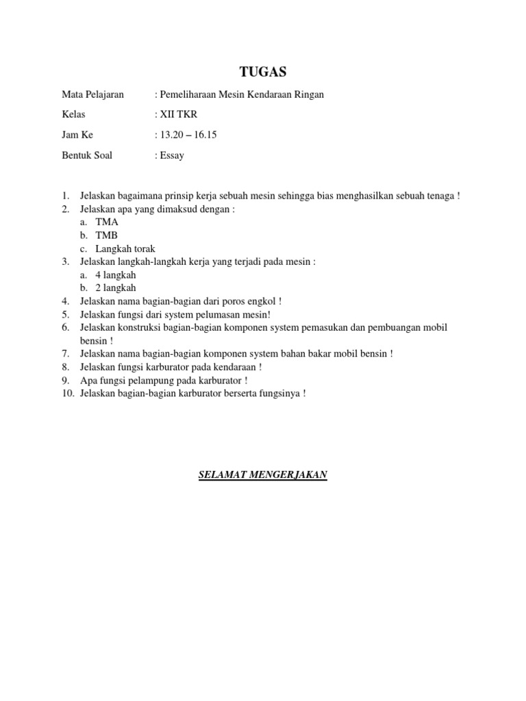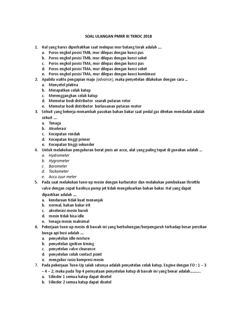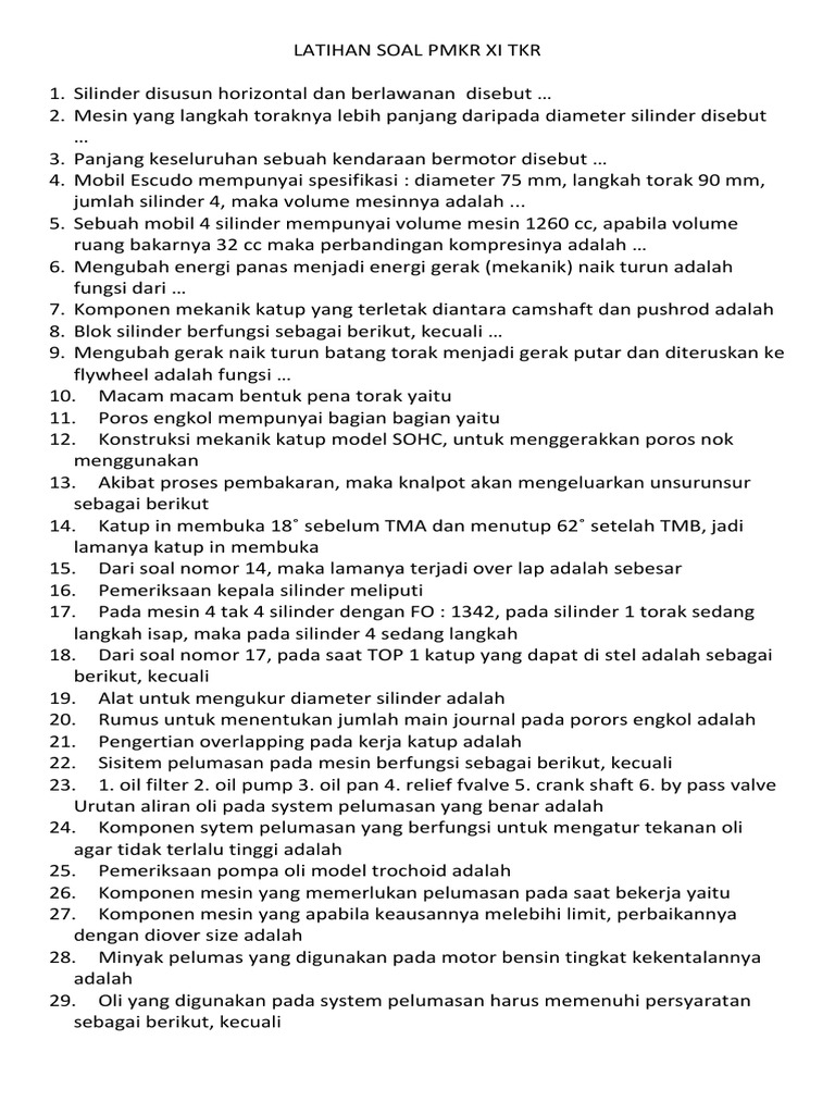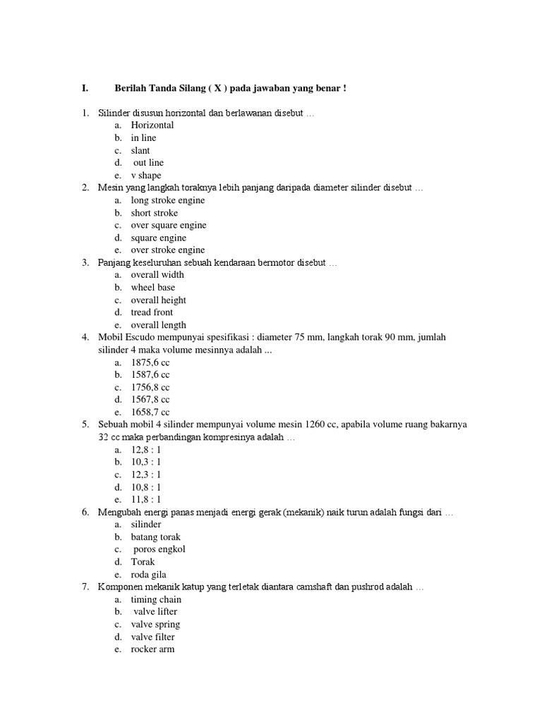 Contoh Soal dan Jawaban Perawatan Mesin Kendaraan 1 | teknik …