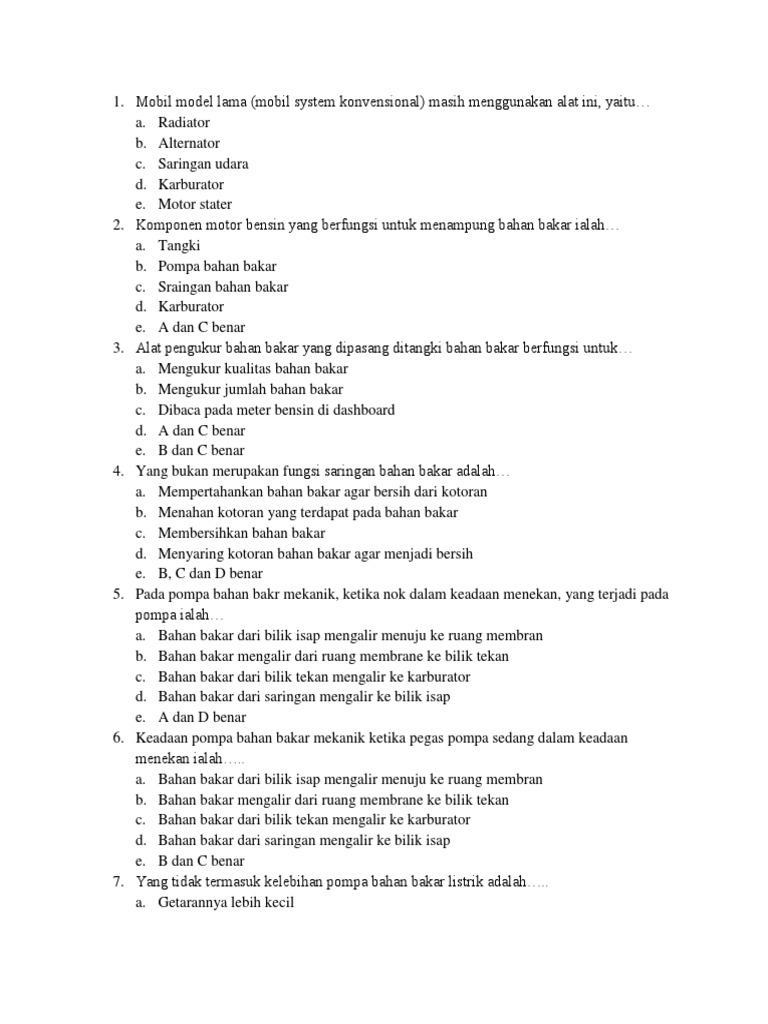 Contoh Soal dan Jawaban Perawatan Mesin EFI Part 1 | teknik …