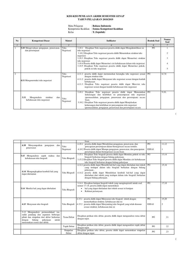 Kisi-kisi Bahasa Indonesia Kelas x Fiks (1)