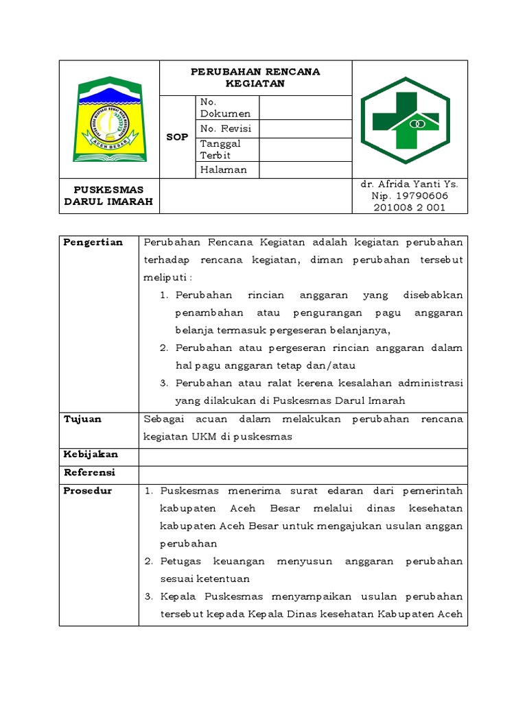 Sop Perubahan Rencana Kegiatan Puskesmas