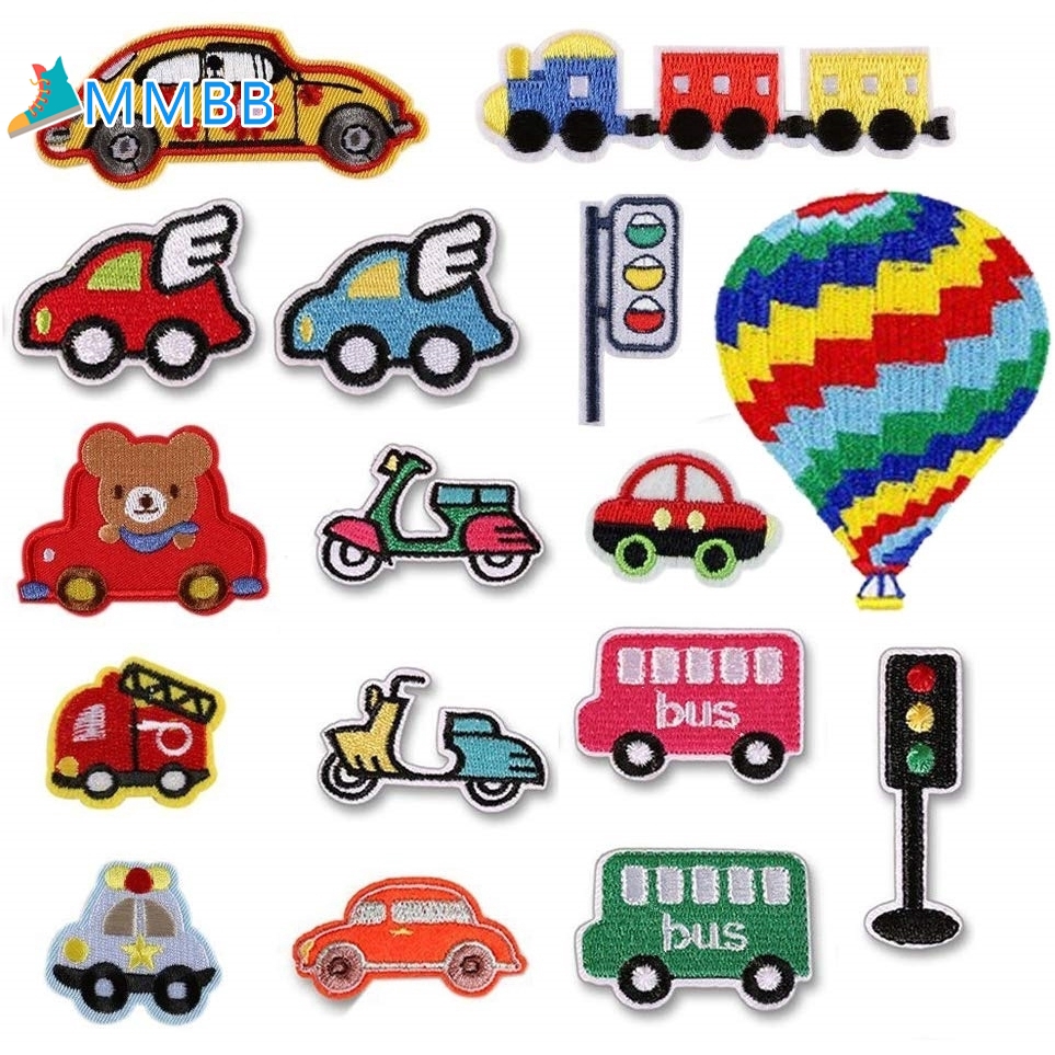 Patch Bordir Bordir kain stiker, Seri kartun mobil, Pakaian stiker …