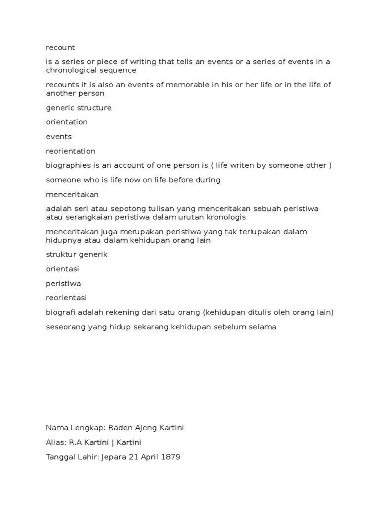 Contoh Biografi Kartini Dalam Bahasa Inggris Beserta Artinya Lengkap