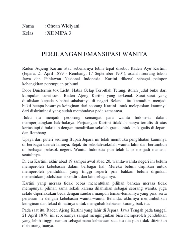 tentukan keteladanan dari tokoh teks biografi berjudul “R.A kartini Tokoh emansipasi wanita” - Brainly.co.id