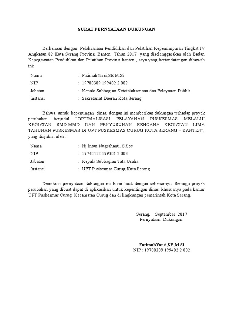 DOC) PERNYATAAN DUKUNGAN | Ernest Christian - Academia.edu