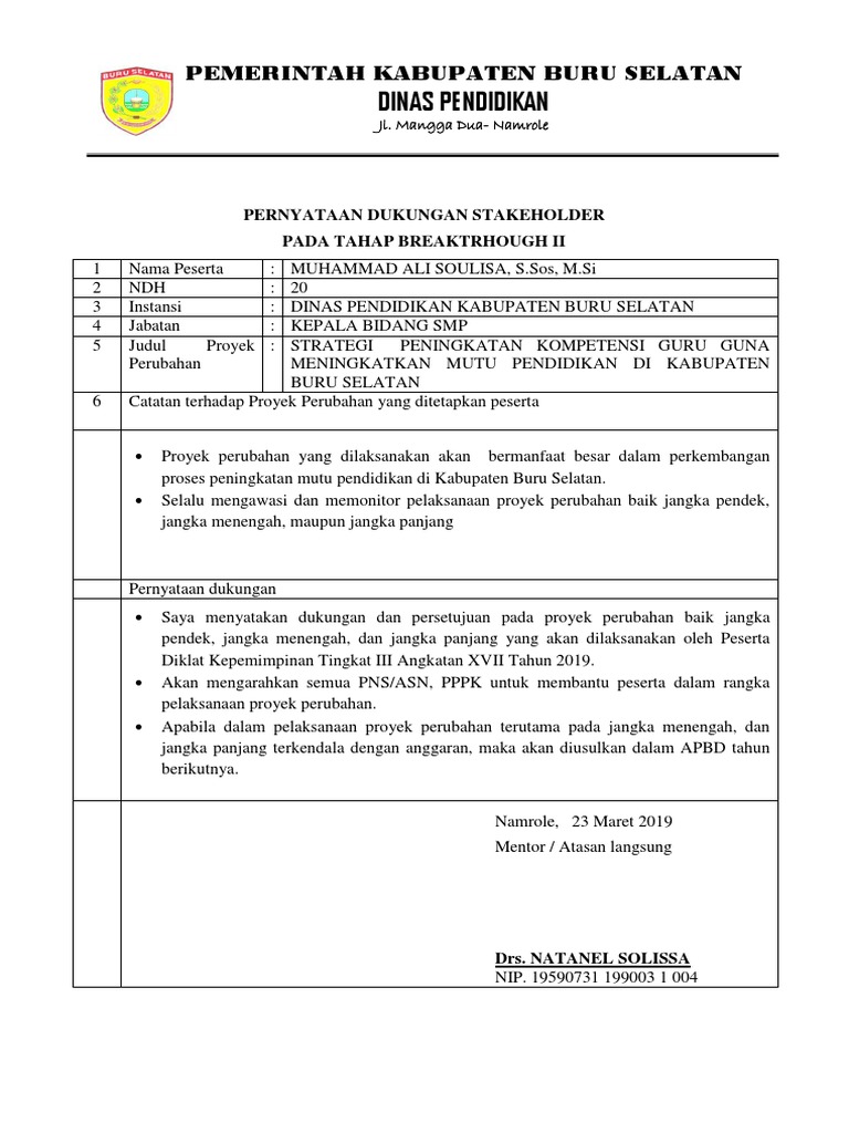 Contoh Surat Dukungan Proyek Perubahan - Surat 28