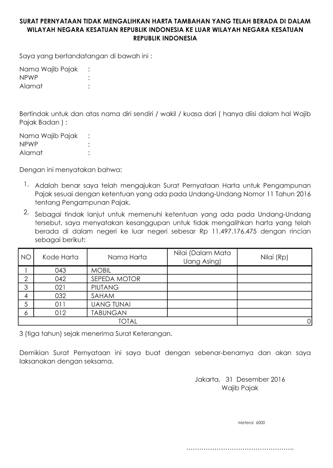 Contoh Surat Pernyataan Harta Tax Amnesty - Contoh Seputar Surat