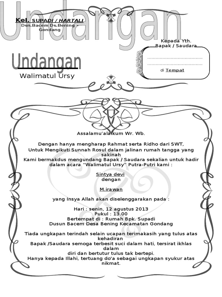 Contoh Undangan Walimatul Ursy Dalam Bentuk Word