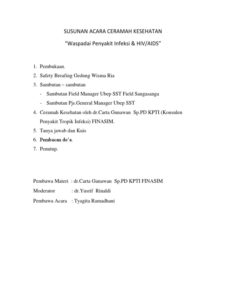 Susunan Acara Ceramah Kesehatan