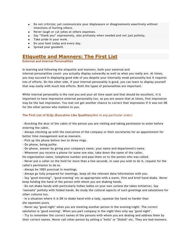 Essay on etiquette and manners