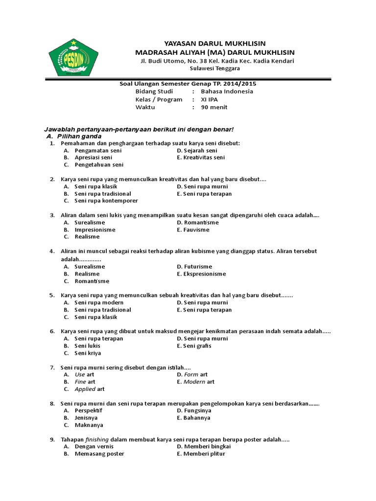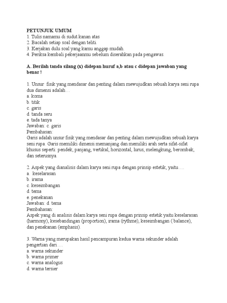 Soal Pendidikan Seni Kelas XII