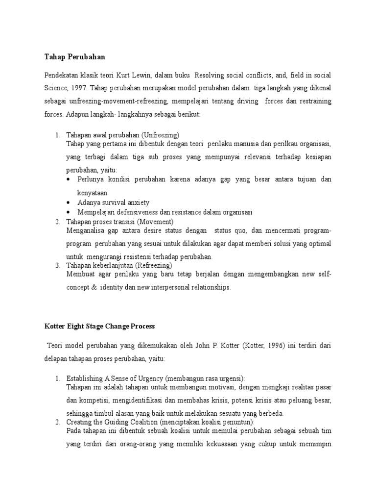 Bagaimana Manajemen Perubahan versi Kurt Lewin : Three Step Model …