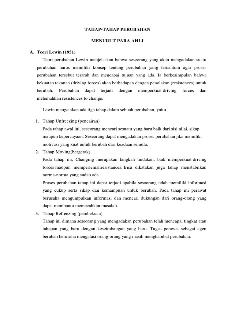 Tahapan Perubahan Menurut Kurt Lewis