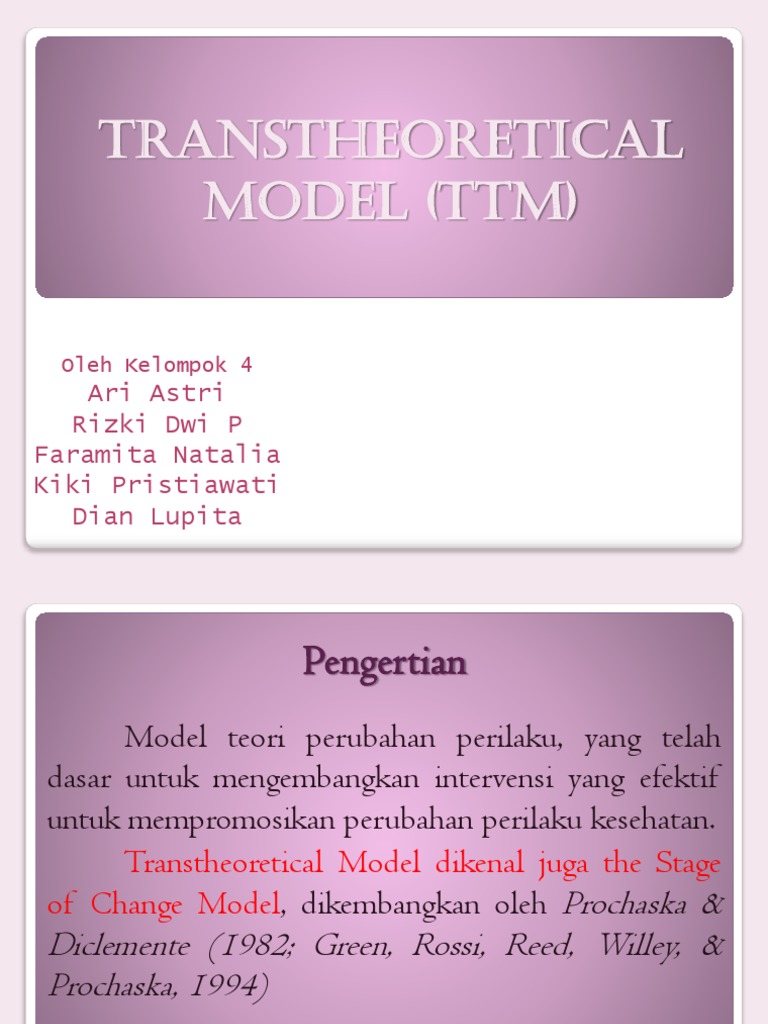 THE TRANSTHEORETICAL MODEL AND STAGE OF CHANGE.pptx - THE TRANSTHEORETICAL MODEL AND STAGE OF CHANGE OLEH KELOMPOK 2 1 ALI SAIROZI 131911573018 2 | Course Hero