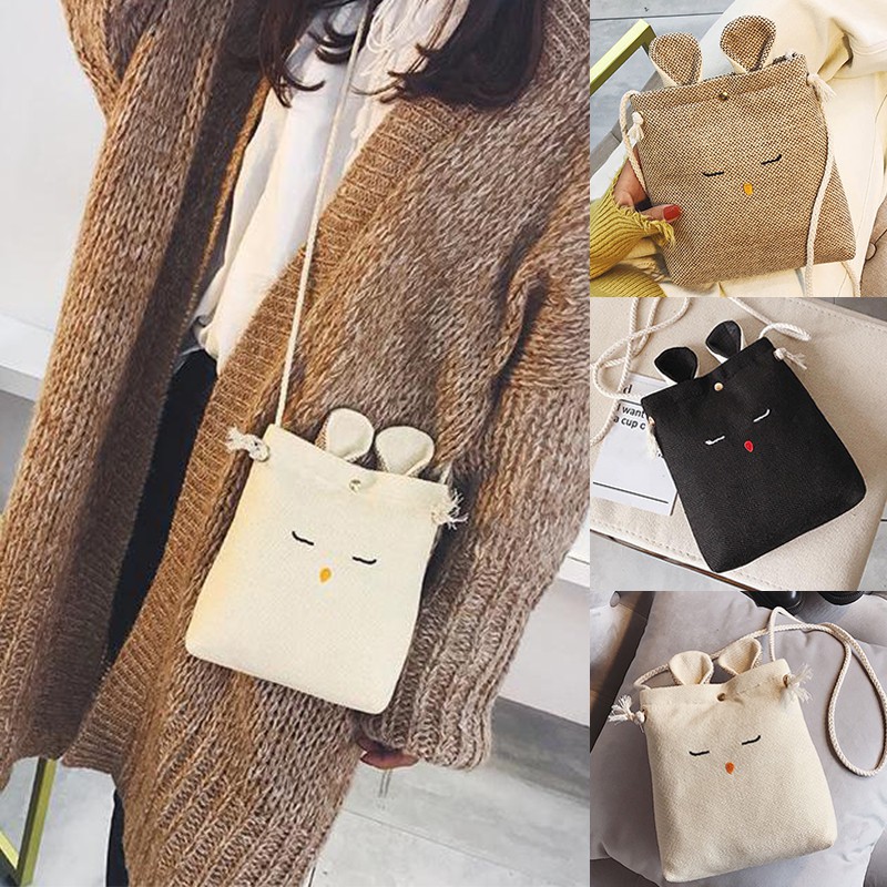Tas Selempang Kain Linen Mini Wanita Desain Kelinci Simple Lucu …
