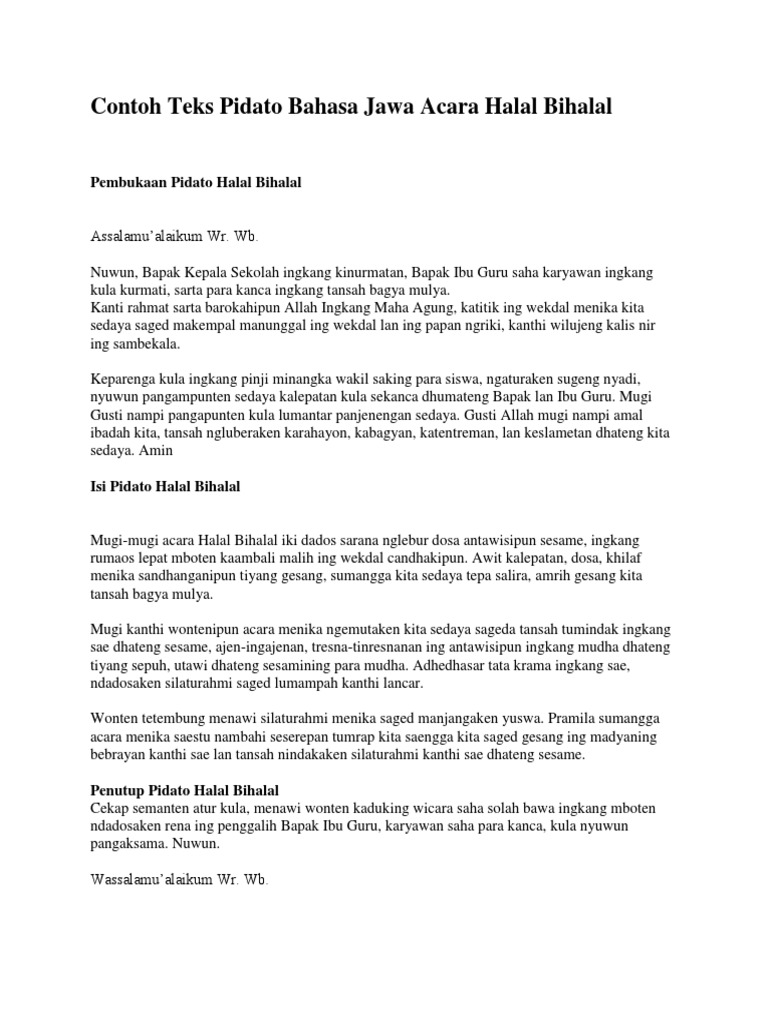 Contoh Teks Pidato Bahasa Jawa Acara Halal Bihalal | Kepala sekolah, Teks, Bahasa