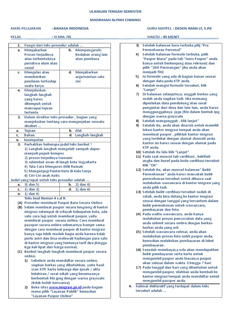 Contoh Soal Ciri bahasa teks prosedur kompleks