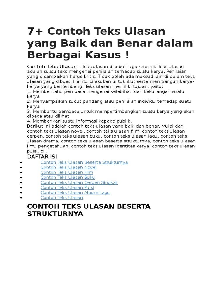 DOC) CONTOH TEKS ULASAN | Riza Satria - Academia.edu