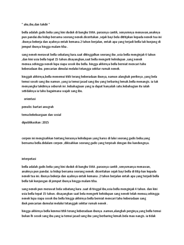 Teks Ulasan Cerpen Aku Ibu Dan Takdir