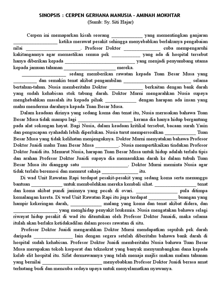 Lesson 4 - Gerhana Manusia (Jawapan).docx - INGKATAN 5 GERHANA MANUSIA TARGET SKOR A CERPEN GERHANA MANUSIA Cerpen ini memaparkan kisah seorang doktor | Course Hero