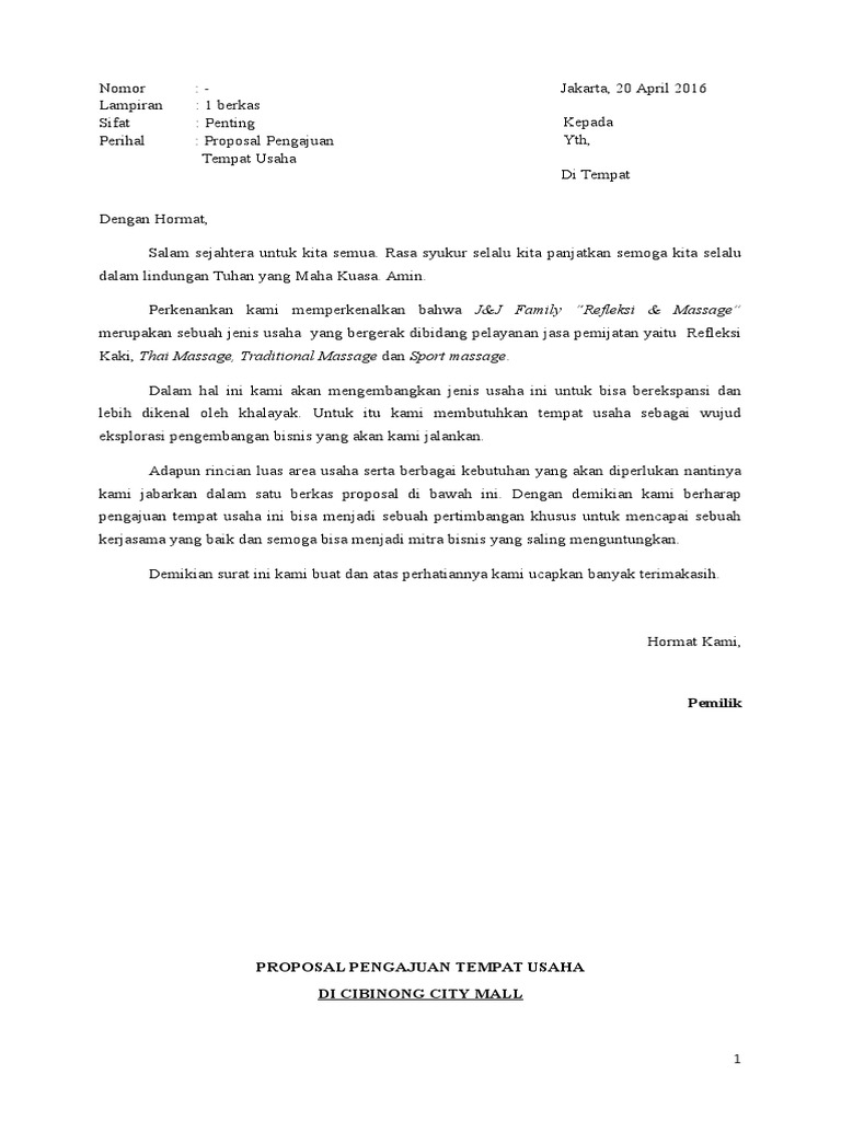 Contoh Proposal Pengajuan Sewa Tempat Usaha Doc - Temukan Contoh