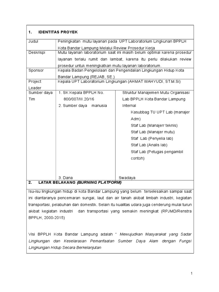 DOC) RENCANA PROYEK PERUBAHAN (PROJECT CHARTER | Annisa Maresti …