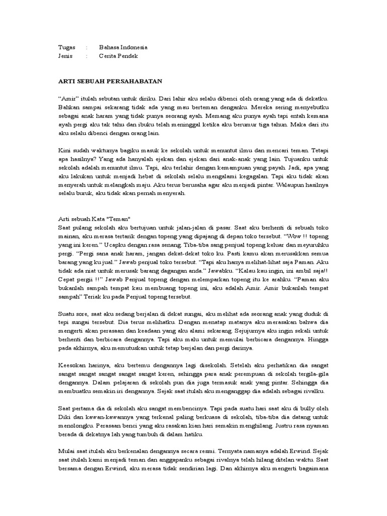 Cerpen Tugas Bahasa Indonesia | arumhikmahfifah