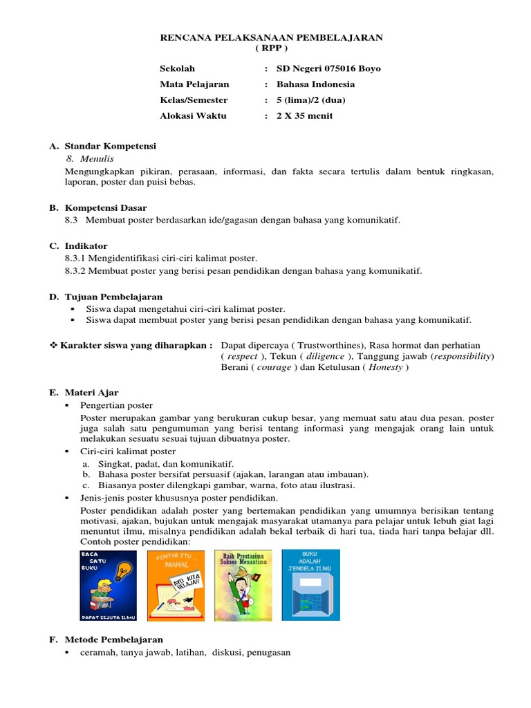 RPP 1 Lembar Seni Budaya Kelas 8 Membuat Poster - TB.COM