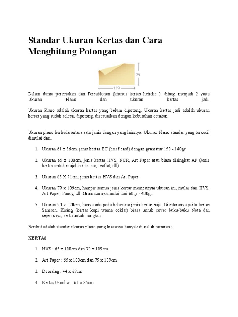 Standar Ukuran Kertas Dan Cara Menghitung Potongan