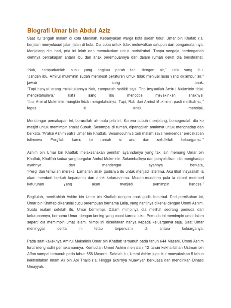 Biografi umar bin Abdul Aziz di Lapak dede indarsih | Bukalapak