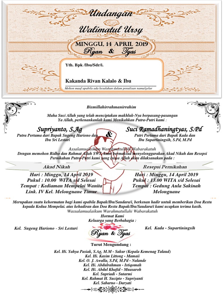 Contoh Undangan Pernikahan Dengan Turut Mengundang - Bagikan Contoh