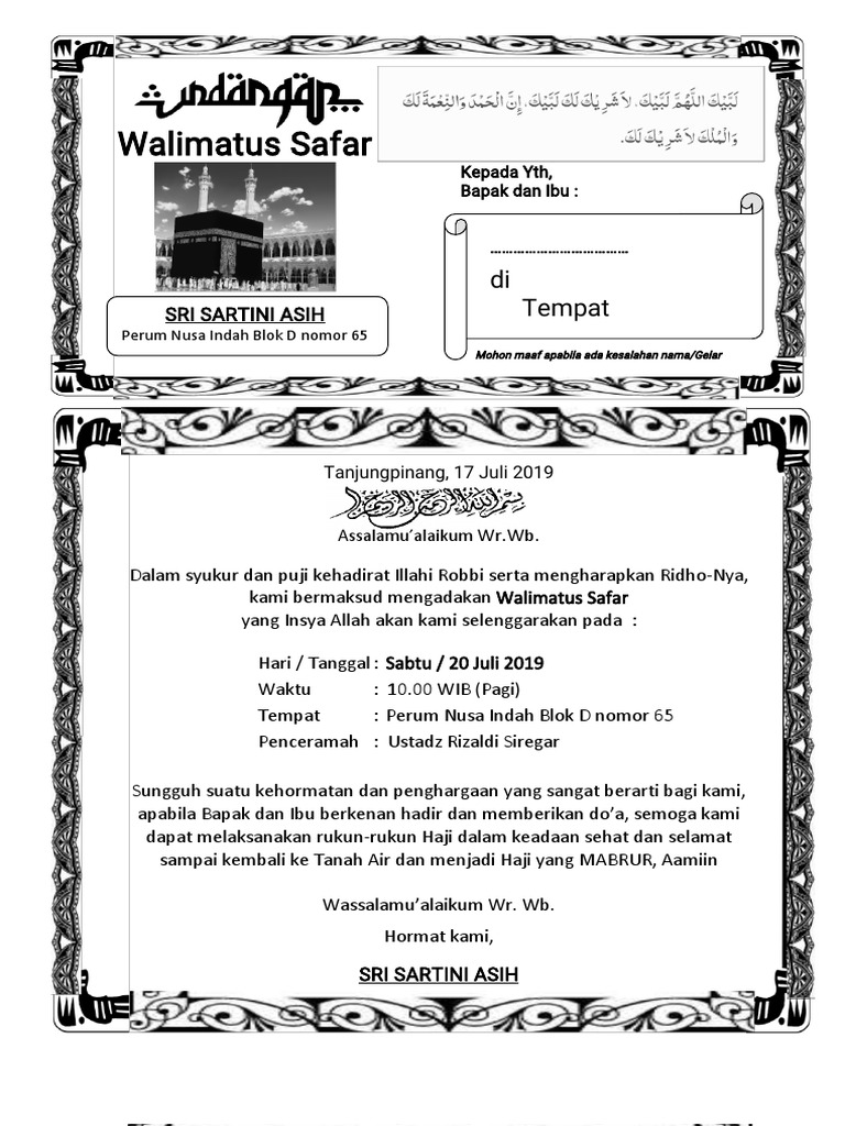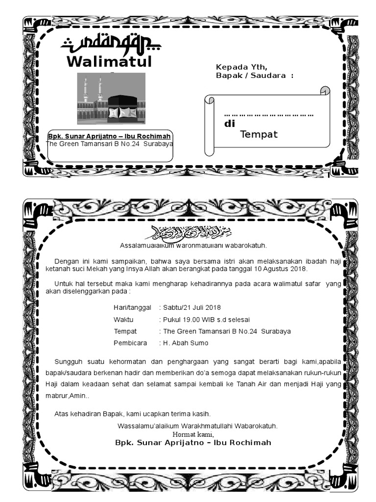 DOC) Contoh Konsep Surat Undangan Walimatus Safar dan Umroh Word | Kurniawan M. Rifai - Academia.edu