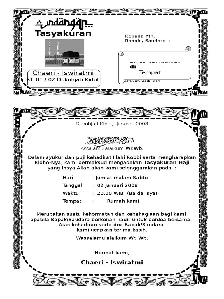 Contoh Undangan Syukuran Haji Pdf - Free Photos