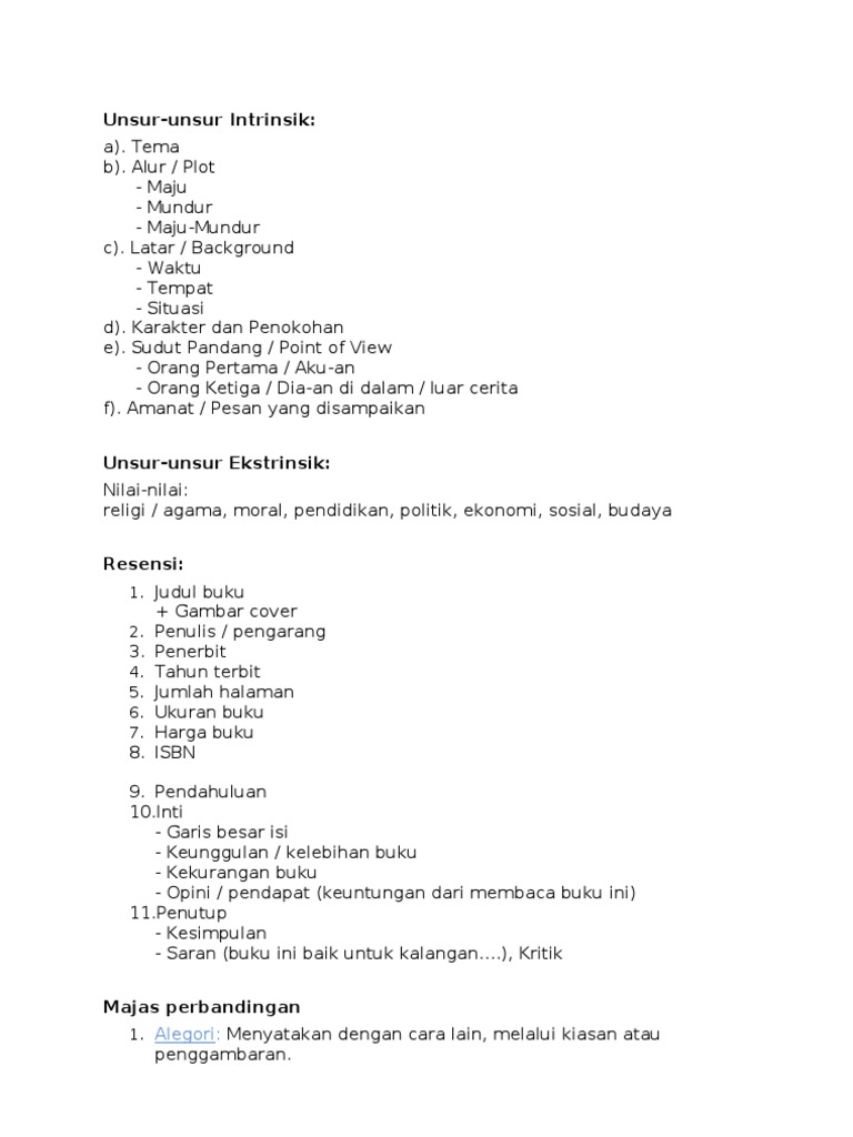 Daftar Unsur Intrinsik, Ekstrinsik, Majas