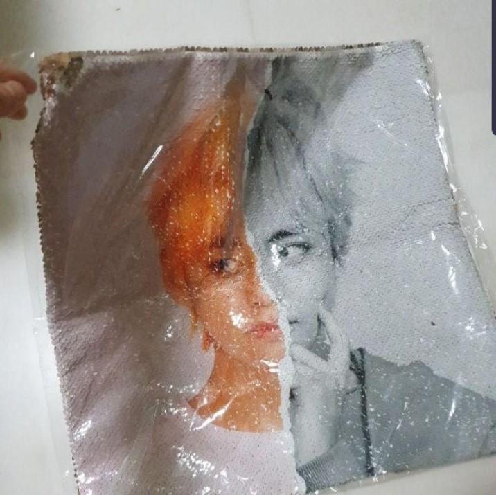 INSTOCK TAEHYUNG V BTS Magic Reversible Sequin Pillow Cushion Case / Cover, Entertainment, K-Wave on Carousell