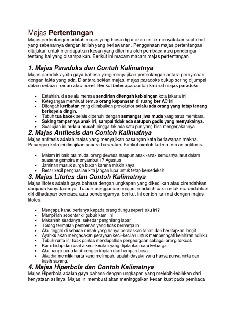5 Macam Majas Pertentangan, Pengertian dan Contoh Kalimatnya …