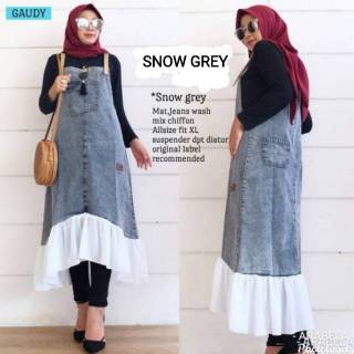 Baju Kodok Overall Selutut Midi 7/8 Bahan Jeans Levis Denim Mix Chiffon Snow Grey Abu-Abu Abu2 Muda | Shopee Indonesia