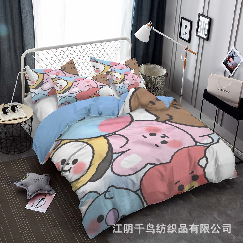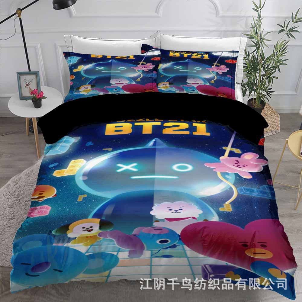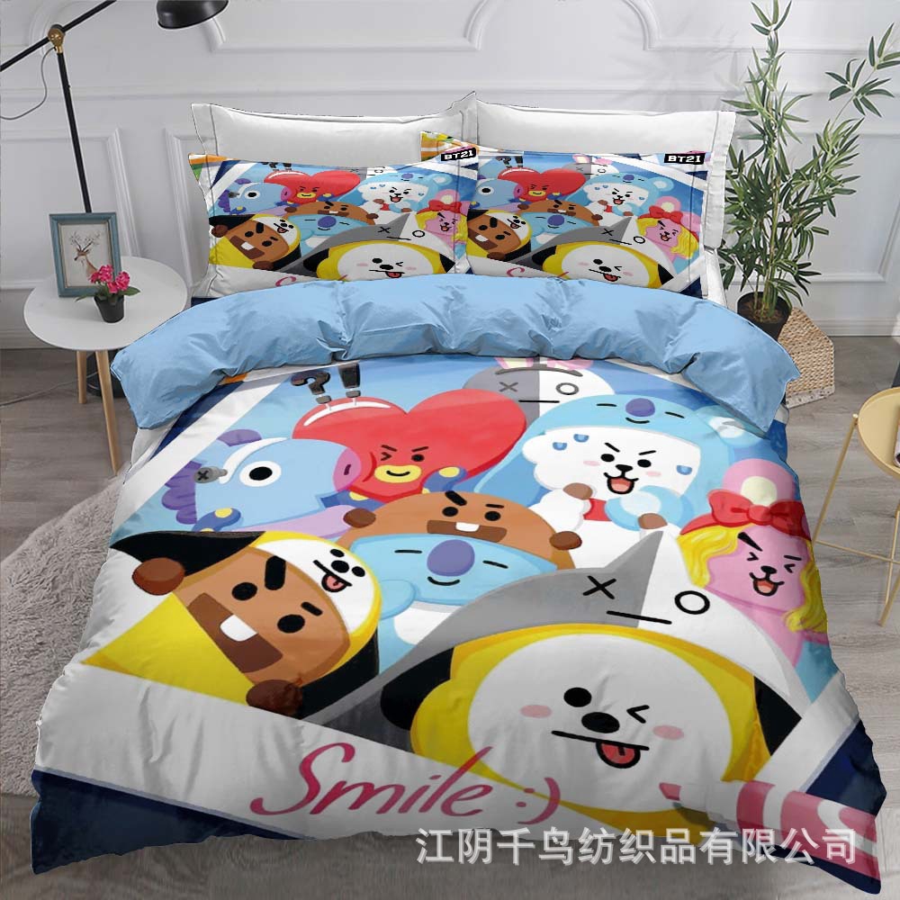 KPOP BT21 Bed Sheet Bed sheet Quilt Pillowcase Three-piece set BTS …
