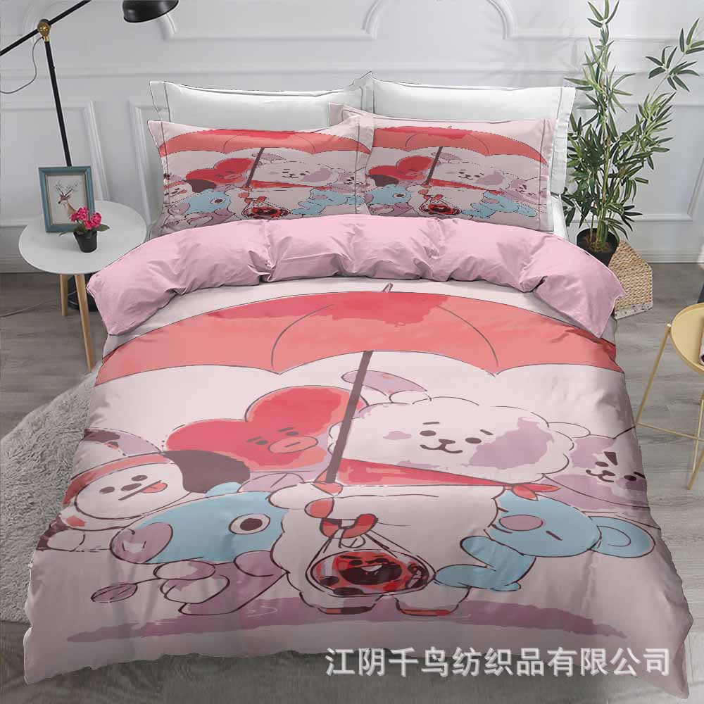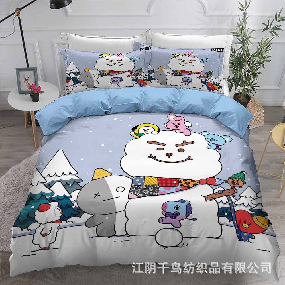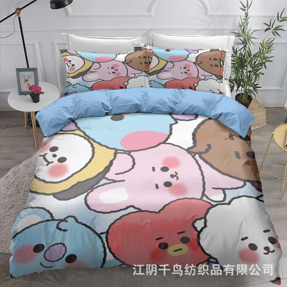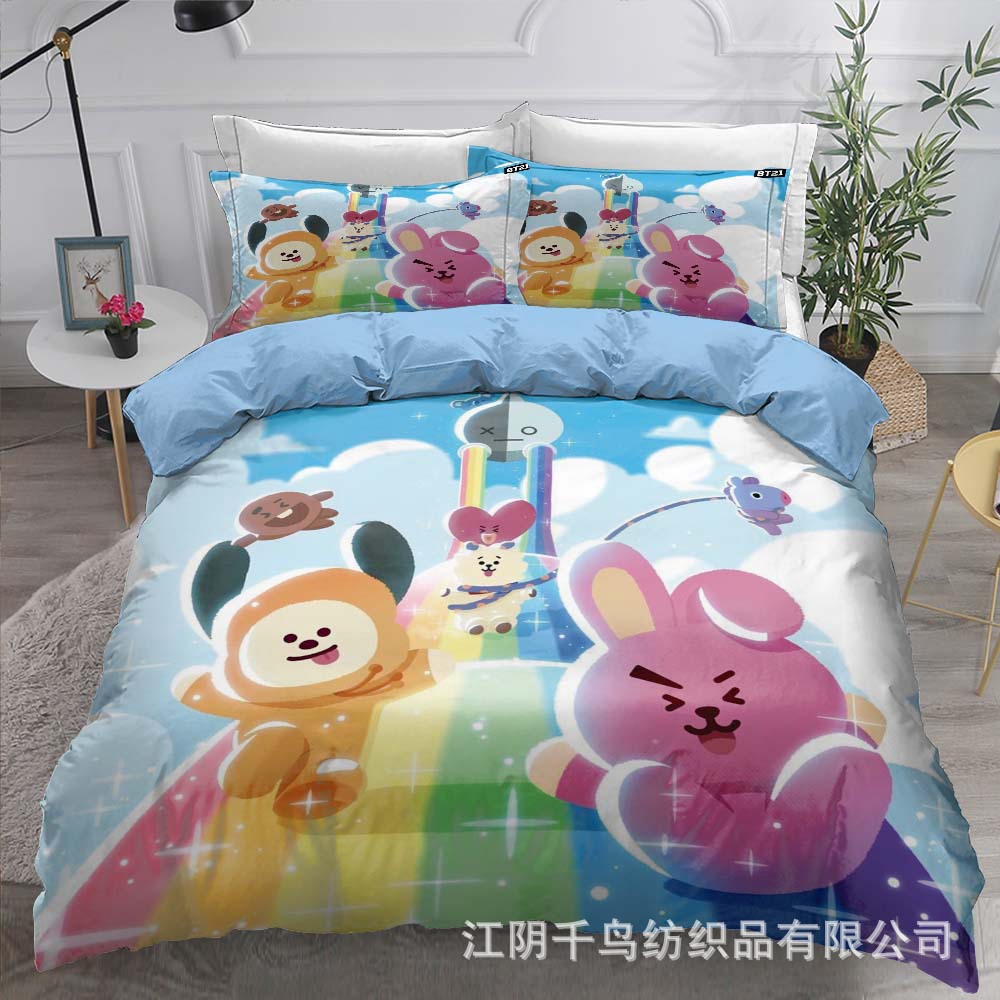 KPOP BT21 Bed Sheet Bed sheet Quilt Pillowcase Three-piece set BTS …