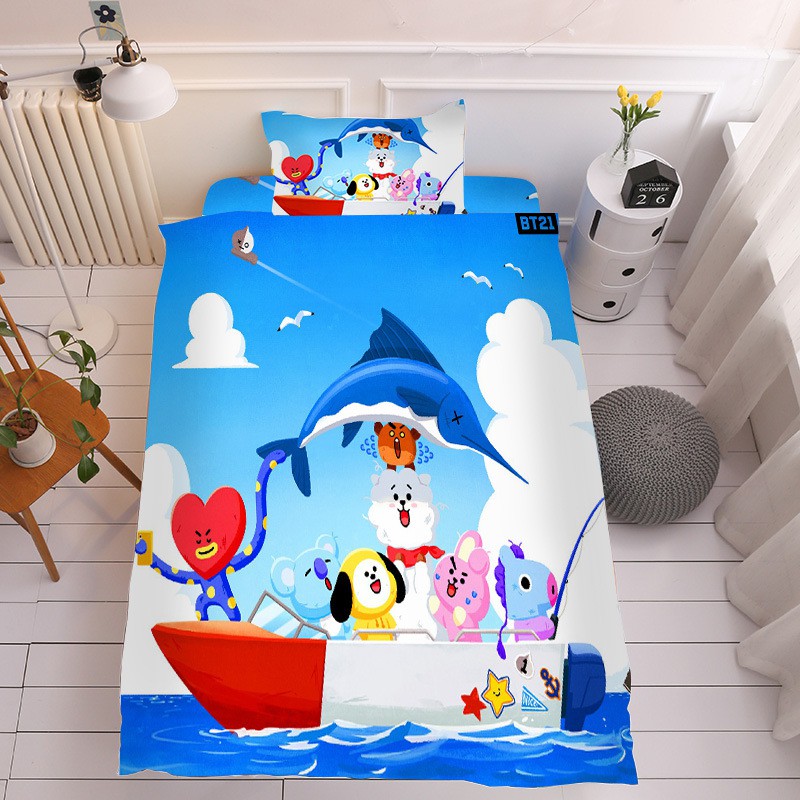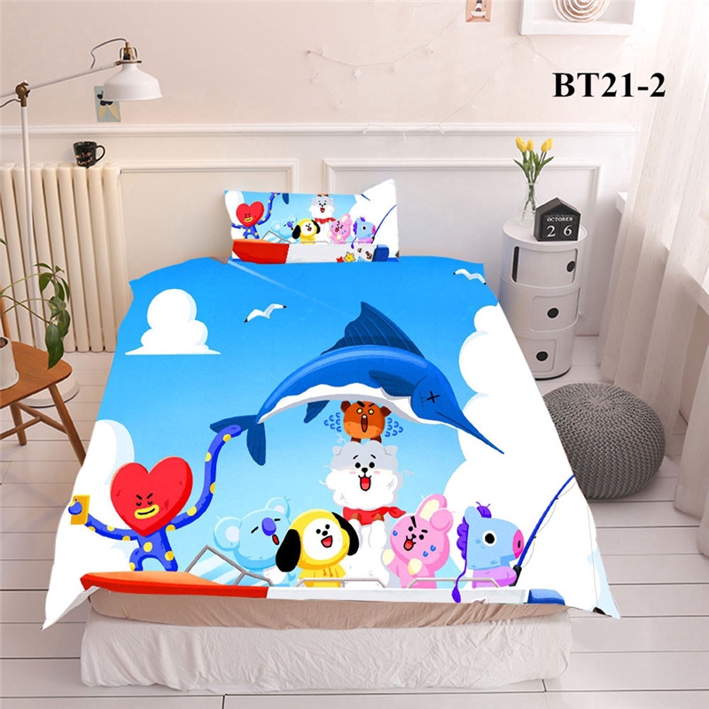 KPOP BTS BT21 3 IN 1 Bedding Sets Cute Cotton Pillowcase And …