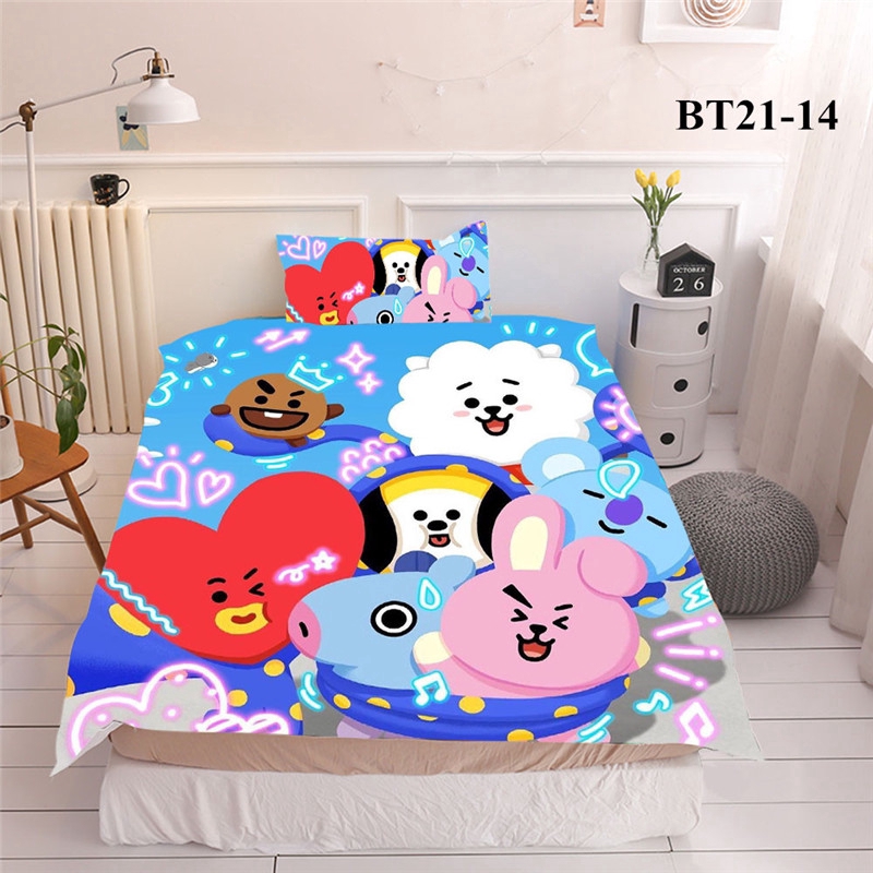 Kpop BTS BT21 Bedding Duvet Cover Sheet Quilt Cover Pillowcase …