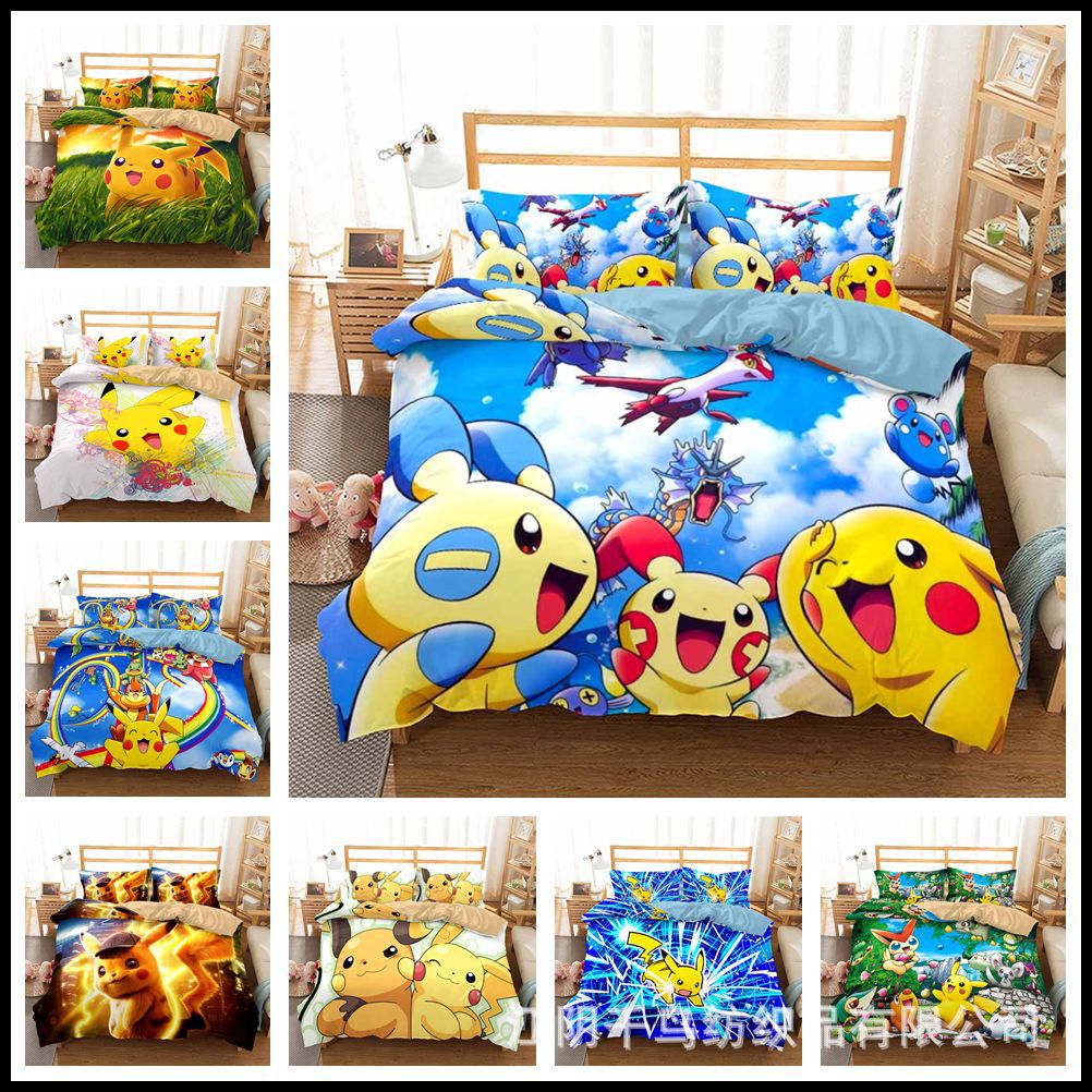 Pokemon Cartoon Bed Cover Pikachu Kids Single Bedding Quilt Case …