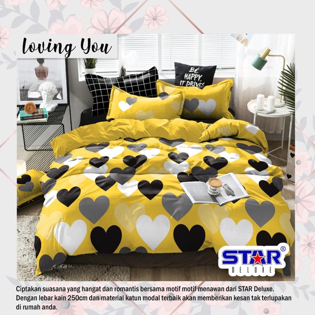 Star deluxe loka cvc cotton bed linen Loving You Yellow Black Love | Shopee Singapore