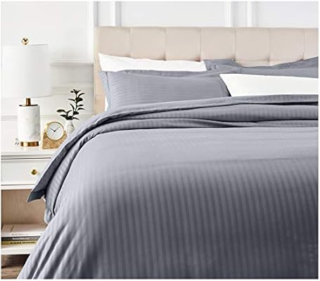 AmazonBasics Deluxe Striped Microfiber Duvet Cover Set - King, Dark Grey: Amazon.sg: Home