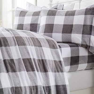 Great Bay Home Extra Soft Cozy Velvet Plush Sheet Set. Deluxe Bed Sheets with Deep Pockets. Velvet Luxe Collection (Full, Buffalo Check - Buffalo Check - Blush Pink): Amazon.sg: Home