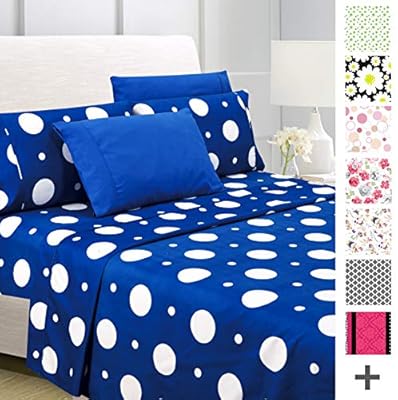 American Home Collection Deluxe 6 Piece Printed Sheet Set of Brushed Fabric, Deep Pocket Wrinkle Resistant - Hypoallergenic (Queen, Blue Polka Dot): Amazon.sg: Home