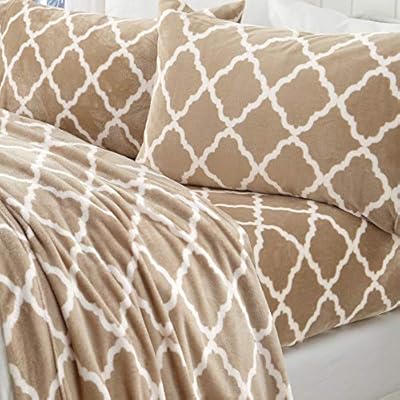 Great Bay Home Extra Soft Cozy Velvet Plush Sheet Set. Deluxe Bed Sheets with Deep Pockets. Velvet Luxe Collection (Twin, Beige/White): Amazon.sg: Home