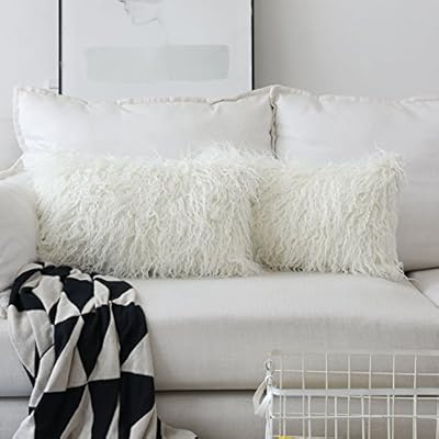 Deluxe Home Decorative Super Soft Plush Mongolian Faux Fur Oblong Throw Pillow Cover Cushion Case for Bed, Set of 2 (12x20 inch, Off White): Amazon.sg: Home