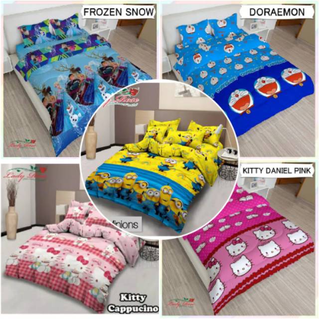 Bed Cover Lady rose King Motif Doraemon Hello Kitty Minion Frozen - Ukuran 180x200 No.1 Termurah | Shopee Indonesia